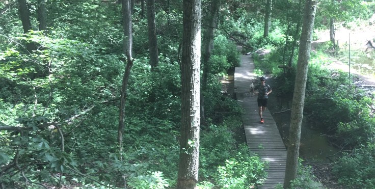 I’m out there on the trail, sweating buckets in the heat and humidity, trying to cover the ground, trying to push myself, and I’m just so much more likely to cut short or walk when I’m on my own. That’s ok. I can accept that. I can not do anything.