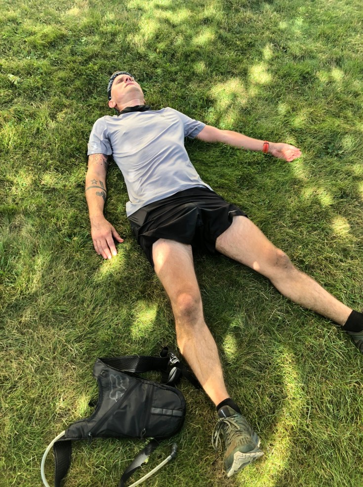 And then I started running, not because I’m a tough guy, but because I’ve fallen down in the woods before, and what you realize after doing the basic math is that even though you fell down and might be in pain, you’re still in the middle of the woods. The only way is forward. Left, then right, then left again, on repeat until you’re home, and in the shower and everything stings and aches.