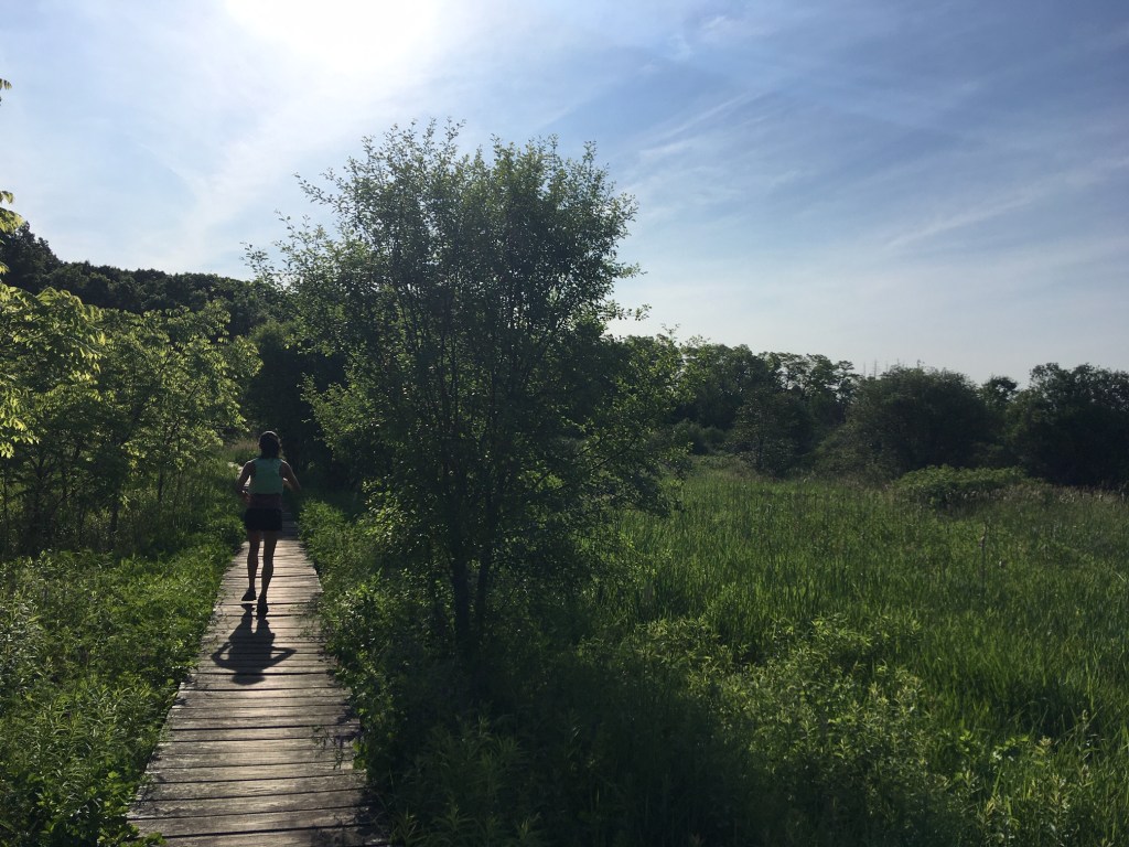 Arguably, the highlight of my local trail system is a long, narrow, wooden bridge through a marsh absolutely exploding with wildflowers, insects and birds. In summertime the cattails grow tall, attracting Monarch butterflies. The sun blares to the tune of cicada buzz, and the ground water finds its way, thickly, into the air you breathe as you dance through as delicately as you can.