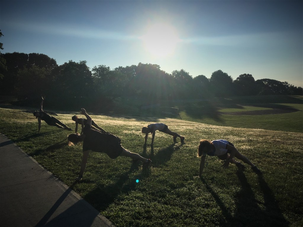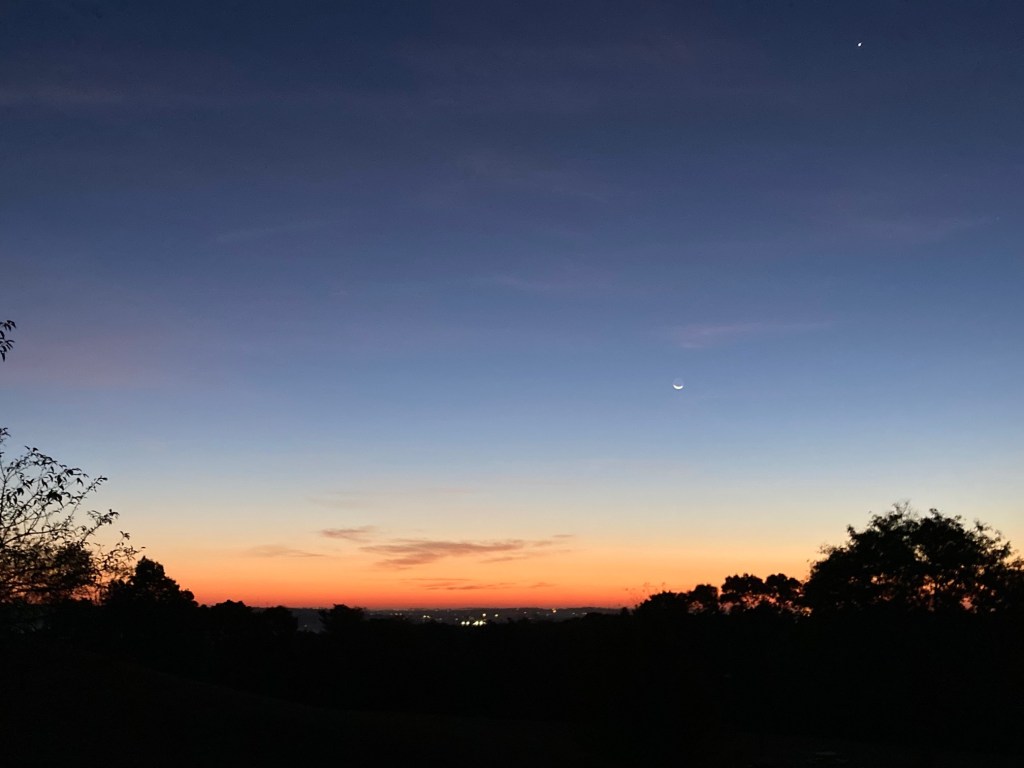 When we rocked up for Suffer Club this morning, all the Sufferers were standing in a loose bunch staring up at the crescent moon hanging in the predawn sky. Within minutes, the sun rose in a burnt caramel layer on the horizon, and we got to work.