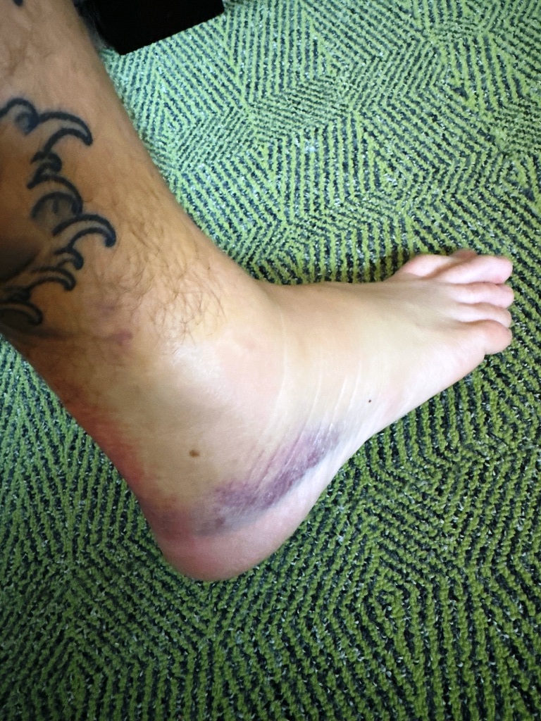An X-ray told me that I had severe tenosynovitis in my foot, adjoining the sprain, and that there was a floating bone chip in my ankle from a previous fracture that doctors had missed. Also bone spurs. All of that explains the pain I’d been running through for last five years or so. The ensuing MRI confirmed that on top of the inflamed tendon sheath and bone problems, I also had two badly sprained ligaments running from the ankle up my leg.